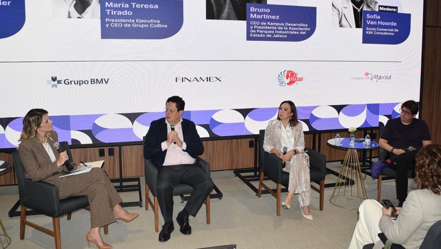 En el marco de la presentación del estudio “Mujeres en las Empresas 2025”, se realizó un panel donde participaron MariTere Tirado, Presidenta Ejecutiva y CEO de Grupo Collins®; Francisco Prada, oficial de Gobierno Corporativo de IFC y Bruno Martínez, Presidente de la Asociación de Parques Industriales de Jalisco.