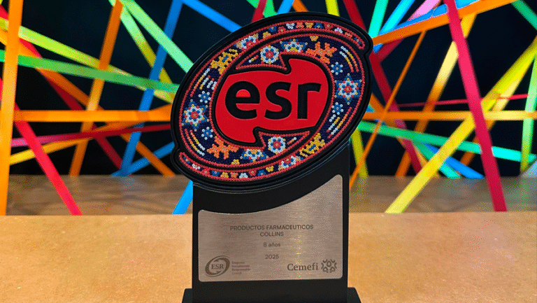 De acuerdo con el Resumen Ejecutivo del Reporte de Resultados sobre el Distintivo ESR, en Productos Farmacéuticos Collins® empresa de Grupo Collins®, hemos obtenido una Clasificación Global del Distintivo, con un desempeño sobresaliente superior al 95%, por encima del promedio general rankeado por otras empresas.